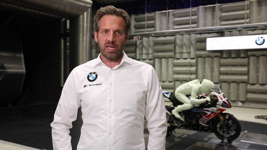 Um die Strömungsverhältnisse möglichst real zu simulieren, reicht es jedoch nicht, nur das Motorrad allein in den Windkanal zu stellen. Auf der echten Rennstrecke sitzt ein Fahrer auf dem Bike, der ebenfalls Luftwiderstand entwickelt, auch wenn seine Sitzposition ebenfalls aerodynamisch optimiert ist. Deshalb kommt auch in dem Luftstrom, den der 2.600 PS starke Elektromotor des Windkanals produziert und der mit Geschwindigkeiten von bis zu 255 km/h weht, das Gesamtpaket aus Motorrad und Fahrer zum Einsatz. Und hier setzt BMW Motorrad Motorsport auf eine innovative Methode: 3D-Scanning.